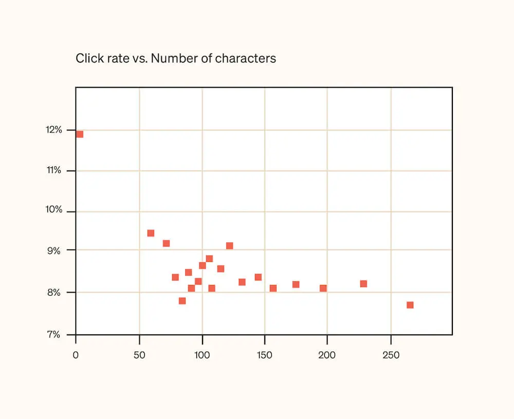 Short messages (under 50 characters) get higher click rates (about 12%). But, be aware, that longer messages (over 150 characters) may see diminishing returns. So, if you have something important to say, a longer SMS can still work. In other words, the shorter the better!