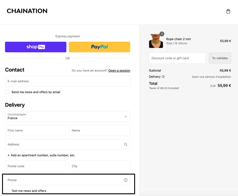 At the moment of purchase, your customers are more likely to agree to sign up for text marketing updates from you, since they’ve already got familiar with your brand and products. On average, 45% of your customers who have come this far will opt in at checkout.